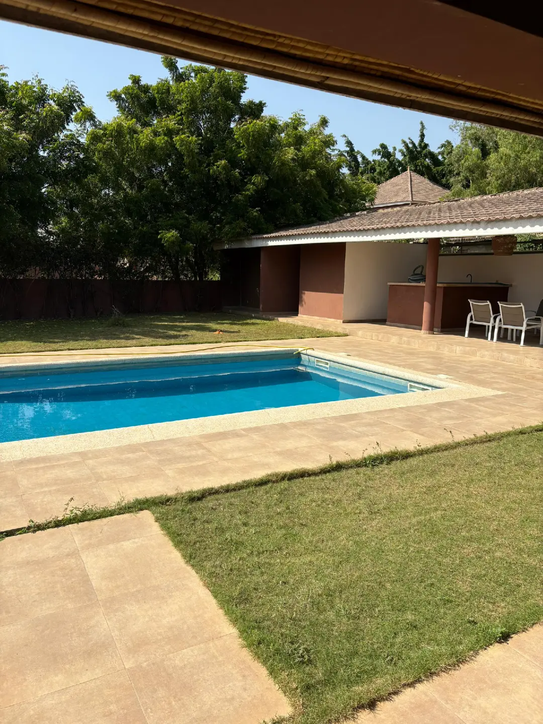 Une magnifique villa meublée de plein pied, style duplex de 3 chambres, dotée d’un grand salon/séjour, d’une cuisine équipée, d’un grand jardin avec piscine et véranda ainsi que d’une petite cuisine d’été.